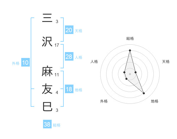 三沢 麻友巳さんを姓名の画数から五運を鑑定