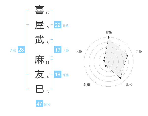 喜屋武 麻友巳さんを姓名の画数から五運を鑑定