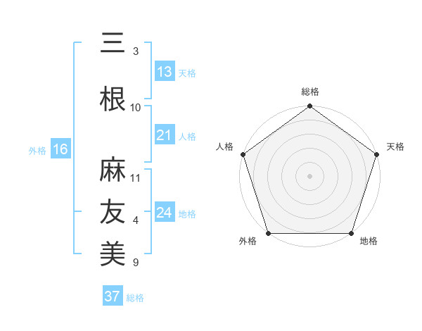 三根 麻友美さんを姓名の画数から五運を鑑定