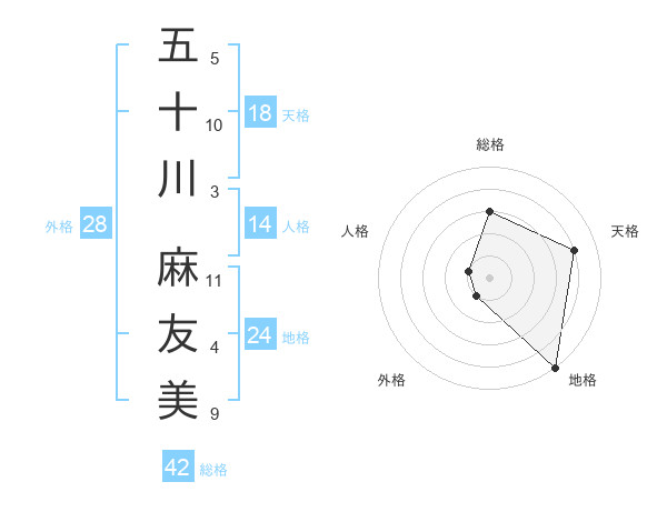 五十川 麻友美さんを姓名の画数から五運を鑑定