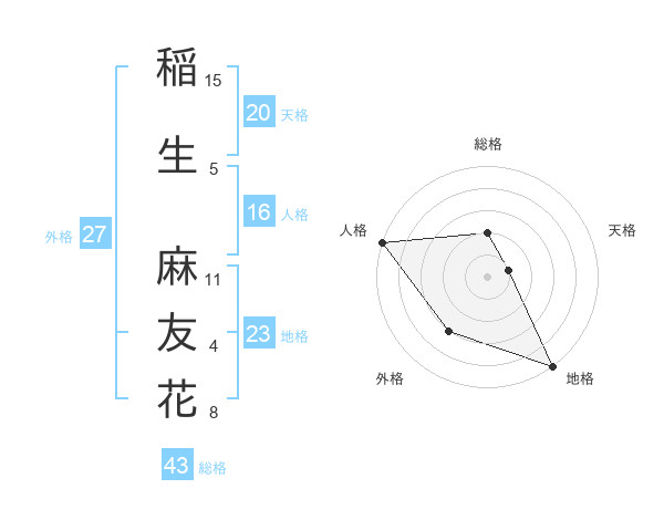 稲生 麻友花さんを姓名の画数から五運を鑑定