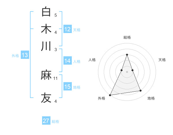 白木川 麻友さんの総格は27画の3点!