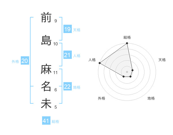 前島 麻名未さんを姓名の画数から五運を鑑定