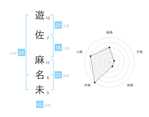 遊佐 麻名未さんの天格は20画の1点!