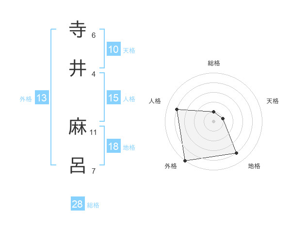 寺井 麻呂さんを姓名の画数から五運を鑑定