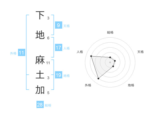 下地 麻土加さんの総格は28画の1点!