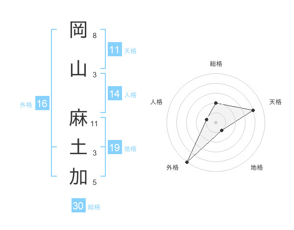 岡山 麻土加さんを姓名の画数から五運を鑑定
