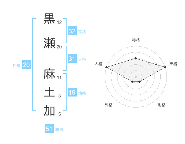 黒瀬 麻土加さんを姓名の画数から五運を鑑定