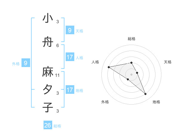 小舟 麻夕子さんの地格は17画の4点!