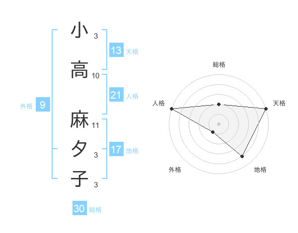 小高 麻夕子さんの総格は30画の2点!