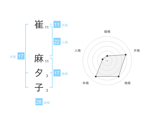 崔 麻夕子さんを姓名の画数から五運を鑑定