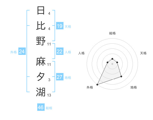 日比野 麻夕湖さんを姓名の画数から五運を鑑定