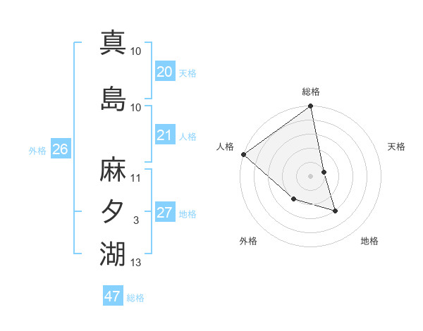 真島 麻夕湖さんを姓名の画数から五運を鑑定