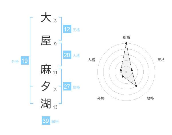 大屋 麻夕湖さんを姓名の画数から五運を鑑定