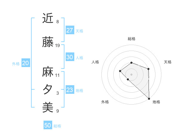 近藤 麻夕美さんを姓名の画数から五運を鑑定