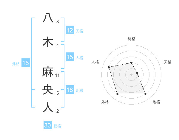 八木 麻央人さんを姓名の画数から五運を鑑定