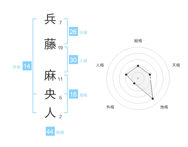 兵藤 麻央人さんを姓名の画数から五運を鑑定