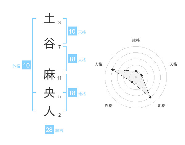 土谷 麻央人さんの総格は28画の1点!