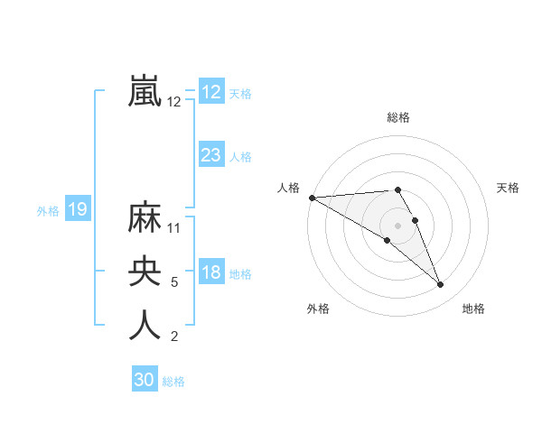嵐 麻央人さんの天格は12画の1点!