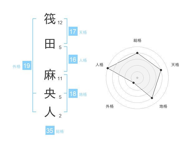 筏田 麻央人さんを姓名の画数から五運を鑑定