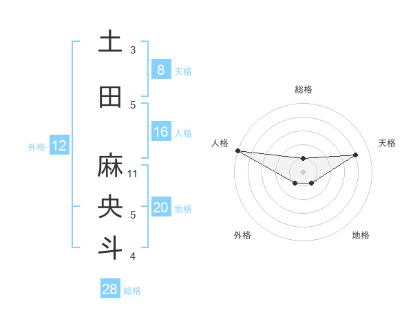 土田 麻央斗さんを姓名の画数から五運を鑑定