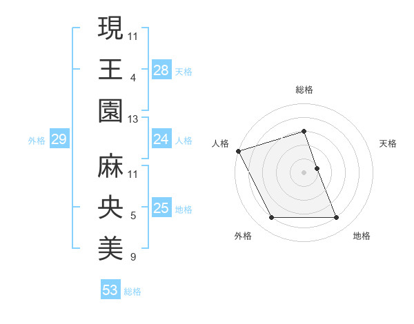 現王園 麻央美さんを姓名の画数から五運を鑑定