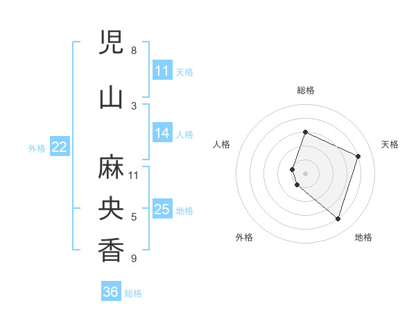 児山 麻央香さんを姓名の画数から五運を鑑定