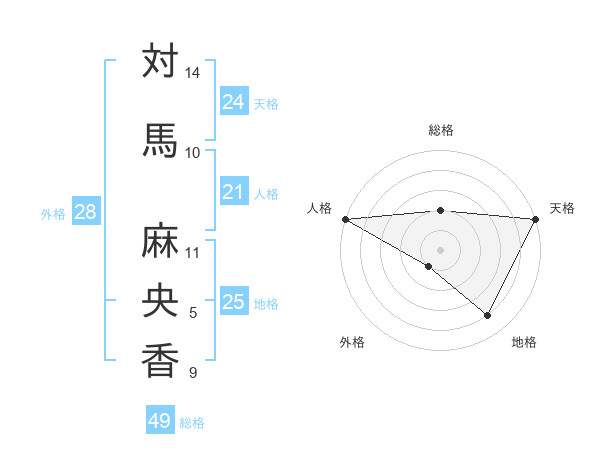 対馬 麻央香さんを姓名の画数から五運を鑑定