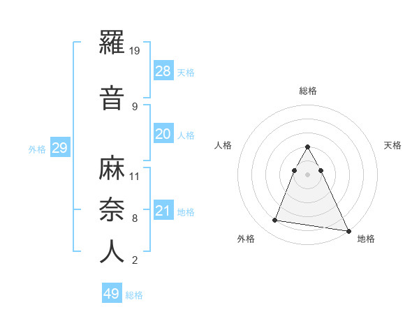 羅音 麻奈人さんを姓名の画数から五運を鑑定