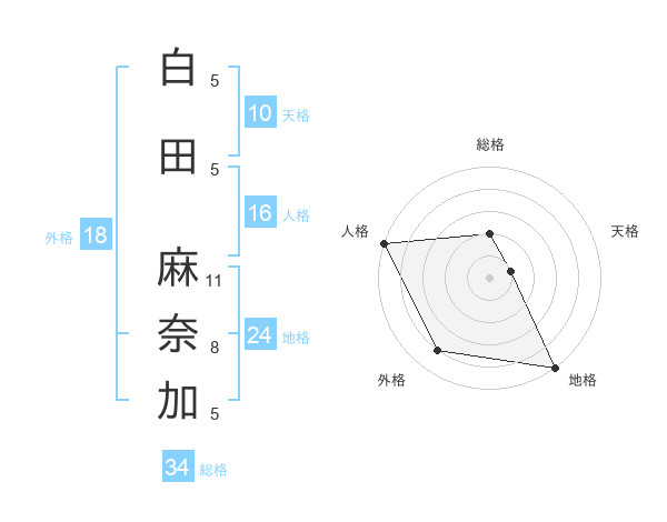 白田 麻奈加さんの総格は34画の2点!
