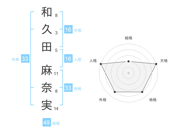 和久田 麻奈実さんの天格は16画の5点!