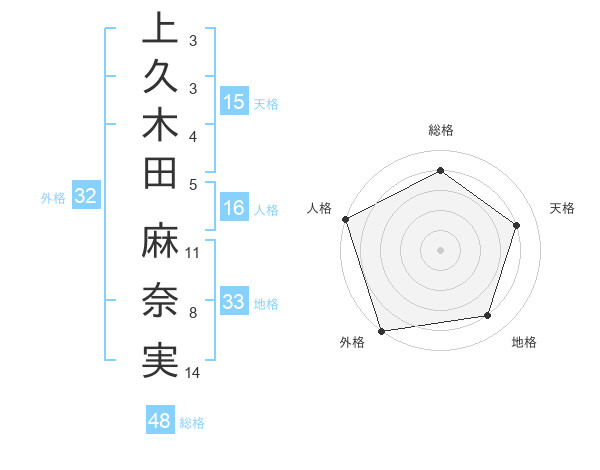 上久木田 麻奈実さんの外格は32画の5点!