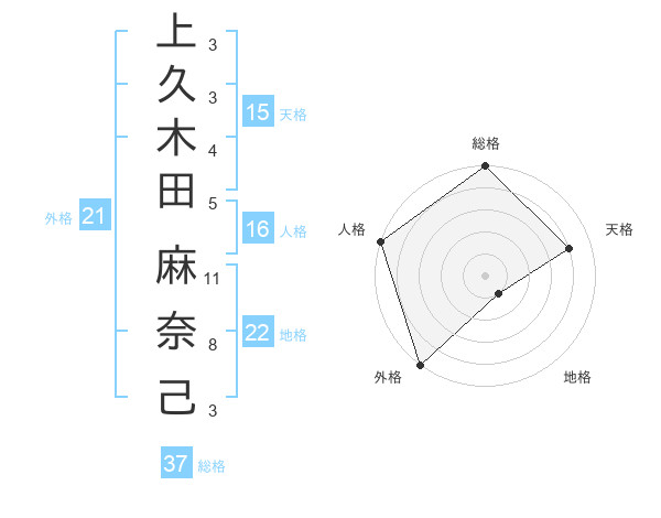 上久木田 麻奈己さんの総格は37画の5点!