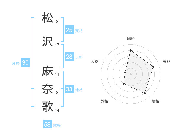 松沢 麻奈歌さんを姓名の画数から五運を鑑定