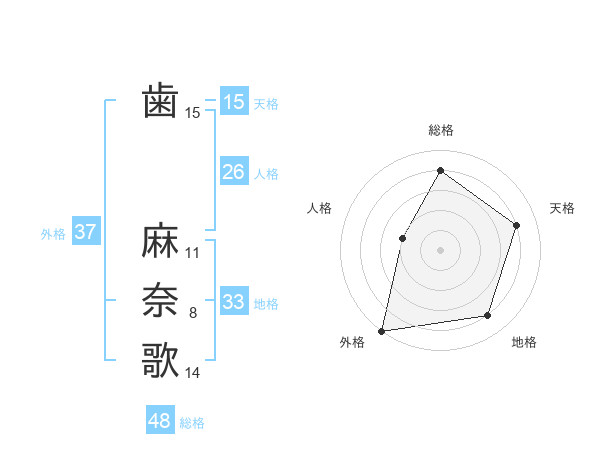 歯 麻奈歌さんを姓名の画数から五運を鑑定