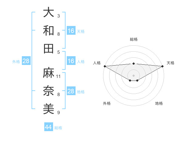大和田 麻奈美さんを姓名の画数から五運を鑑定