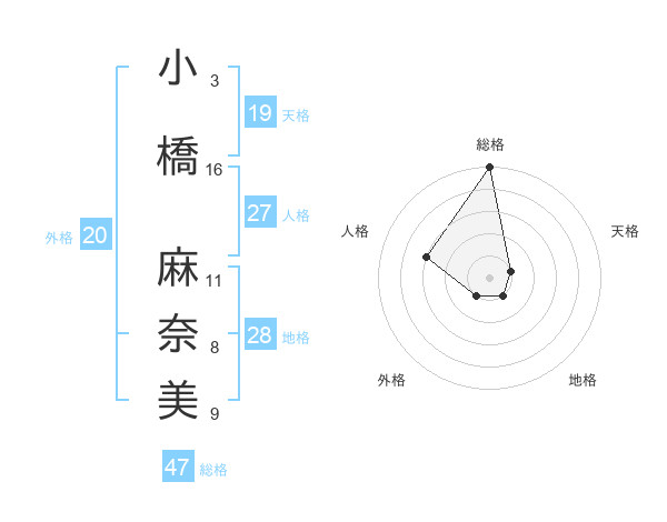 小橋 麻奈美さんの総格は47画の5点
