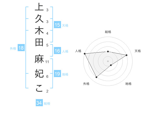 上久木田 麻妃こさんを姓名の画数から五運を鑑定
