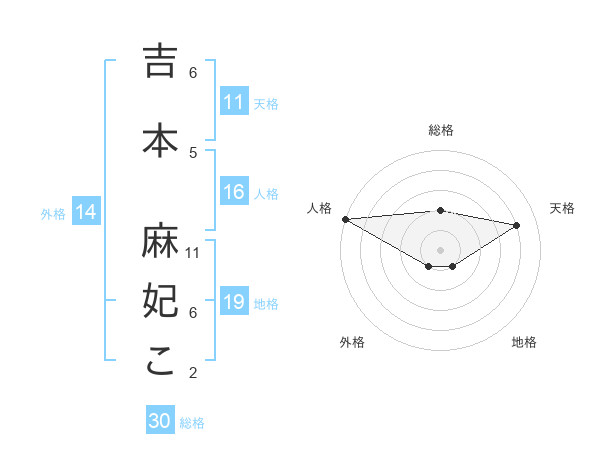 吉本 麻妃こさんの総格は30画の2点