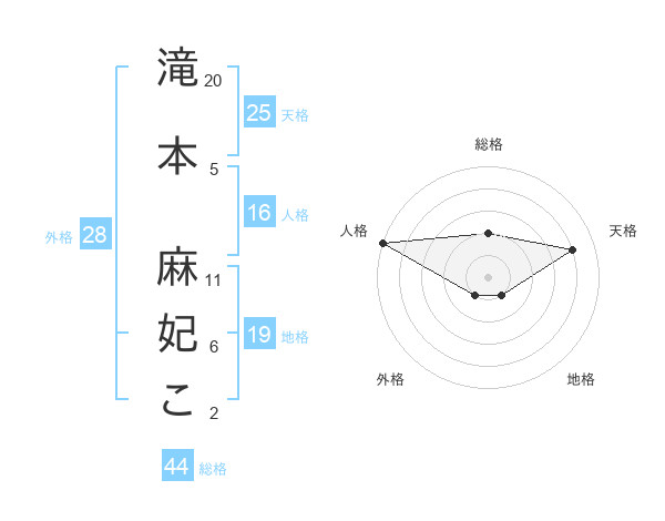 滝本 麻妃こさんを姓名の画数から五運を鑑定