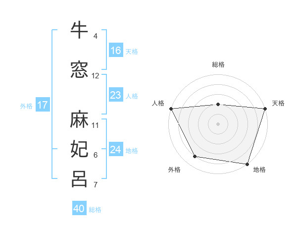 牛窓 麻妃呂さんを姓名の画数から五運を鑑定
