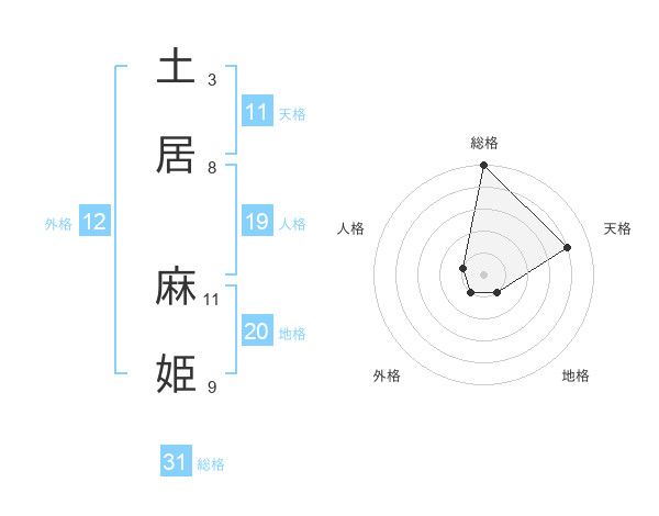 土居 麻姫さんの総格は31画の5点!