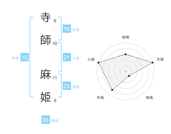 寺師 麻姫さんの天格は16画の5点!