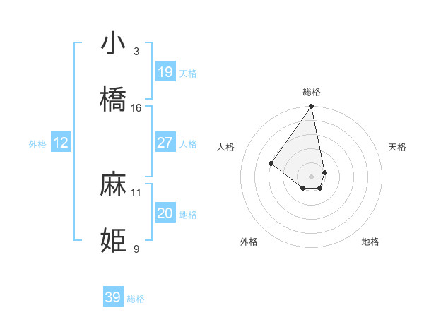 小橋 麻姫さんを姓名の画数から五運を鑑定