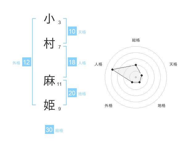 小村 麻姫さんの総格は30画の2点!