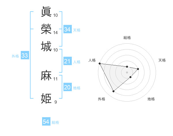 眞榮城 麻姫さんを姓名の画数から五運を鑑定