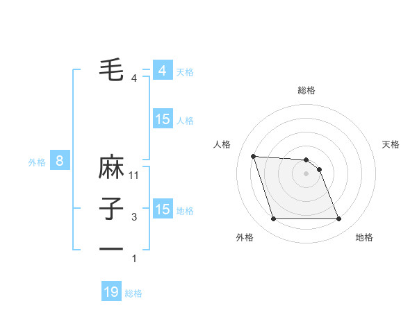 毛 麻子一さんを姓名の画数から五運を鑑定