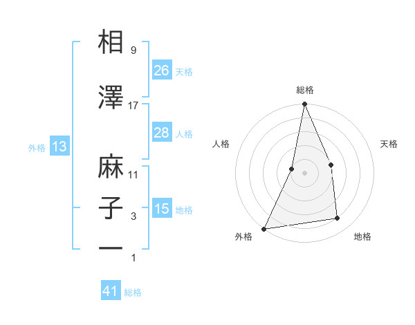 相澤 麻子一さんを姓名の画数から五運を鑑定