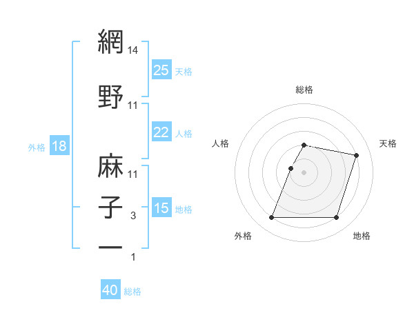 網野 麻子一さんを姓名の画数から五運を鑑定