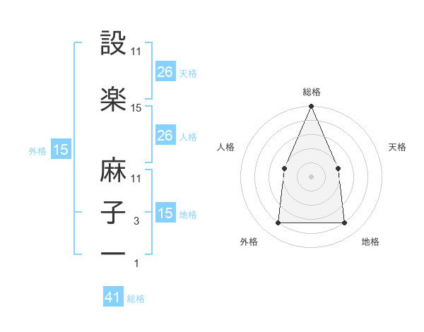 設楽 麻子一さんを姓名の画数から五運を鑑定